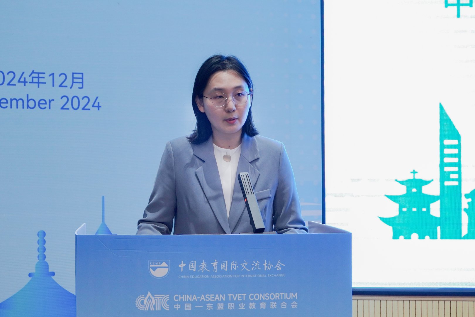中国教育国际交流协会职业教育合作部项目主管杨蕊在开营仪式上致辞