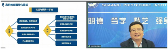 11月9日,受深圳职业技术学院外事处邀请,国际教育学院院长秦景俊通过视频形式为该校外事处做讲座。秦景俊院长以《坚持类型教育定位,优化高职教育国际化发展路径》为题,在讲座中分析梳理了我国高职教育国际交流合作的政策脉络,面临的机遇与挑战,分享了我校以产教融合为主线,推进国际交流合作的探索与实践,并就培育国际化理念和动能,在疫情背景下如何创新性地开展工作分享了个人的思考与体会。在交流互动环节,秦景俊院长结合我校实践,回答了深圳职业技术学院外事处同志关于海外分校建设、留学生培养、国际化考评机制建设等方面的问题。