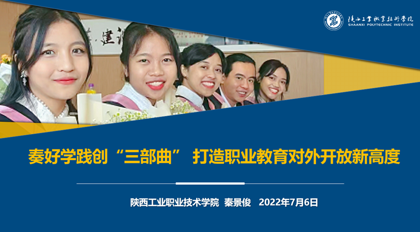 讲座以《奏好学践创三部曲,打造职业教育对外开放新高度》为题,从职业教育对外开放政策解读、实践探索、体会与思考三个方面,分享了我校职业教育对外开放的理论探索与实施路径。