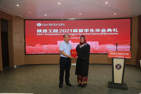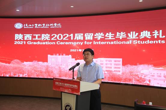 党委副书记田昊代表学校祝贺各位留学生顺利完成学业,赞扬作为陕西工院的首届留学生,各位同学为所有留学生树立了良好典范。他期待各位留学生在新的征程上,接纳变化、迎接挑战,勤勉上进、追逐梦想,交流互鉴、赢得未来;并期盼同学们承载母校荣光,铭记师长嘱托,绽放出属于自己的流光溢彩,用青春续写“陕工品牌”的华美篇章!