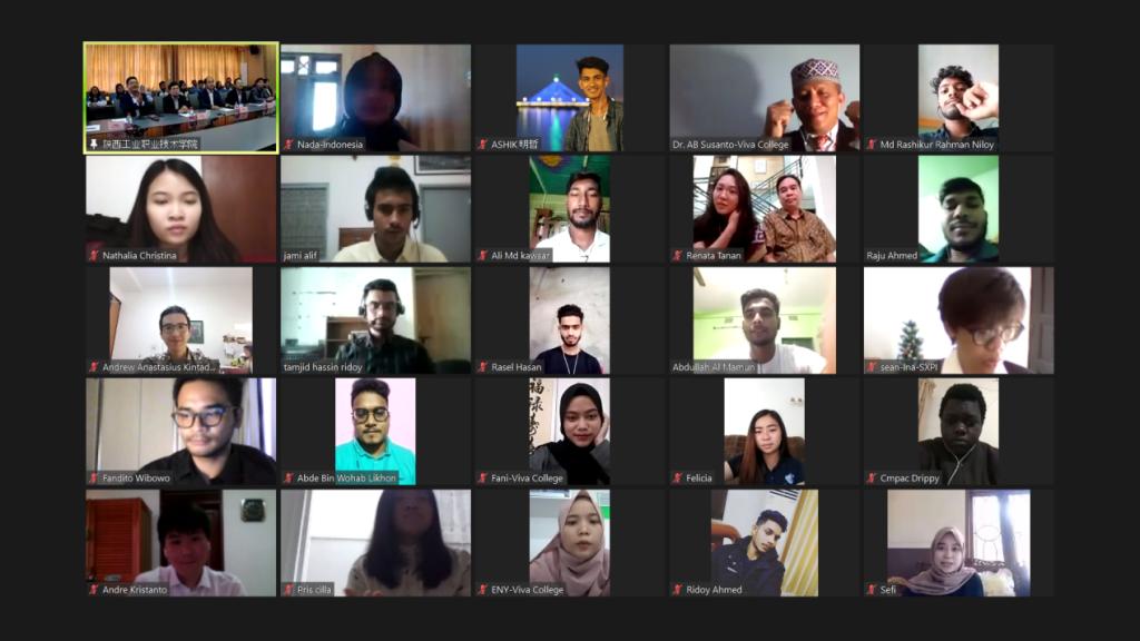 9月23日上午,我院在崇文楼第一会议室举行2020级留学生云端开学典礼。学院党委副书记田昊、副院长梅创社,印尼Kopertip高等教育联盟董事苏桑托博士,国外合作院校代表及校内相关部门负责同志出席典礼,在校留学生代表以及2020级全体留学生及其家长参加了活动。
