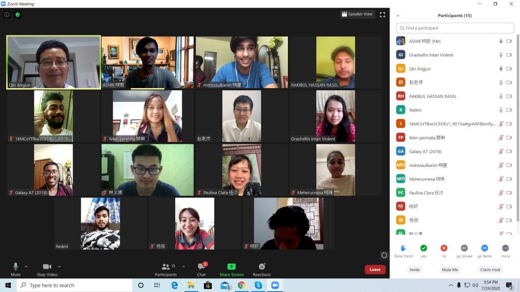 新冠肺炎疫情发生后,我院有13名留学生返回印度尼西亚、孟加拉。目前,由于疫情在国际上的持续恶化,在境外的留学生们还不能返校复课。为安排好在境外留学生的学习和疫情防控工作,7月24日,国际教育学院联合财经与旅游学院,召开在境外留学生网络视频会议。