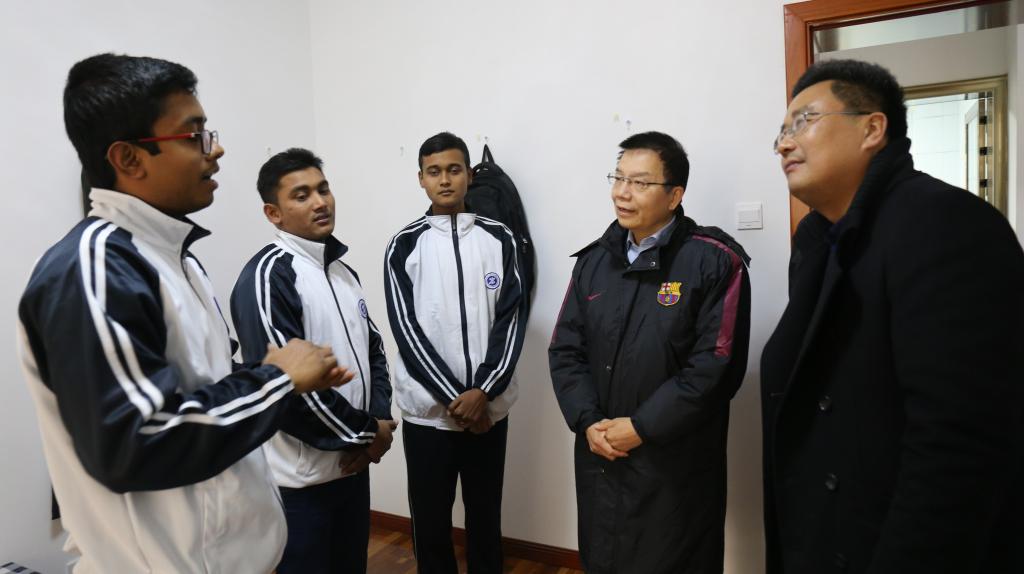 座谈会前,惠朝阳书记深入留学生宿舍走访调研,与同学们亲切交谈,认真倾听了大家在校的学习、生活情况,仔细查看了学生宿舍各项生活设施,叮嘱同学们要遵守校纪校规,禁止使用大功率电器,保持宿舍卫生整洁,营造良好的宿舍文化。留学生纷纷表示一定会珍惜情谊,和睦相处,互相帮助,共创文明宿舍。