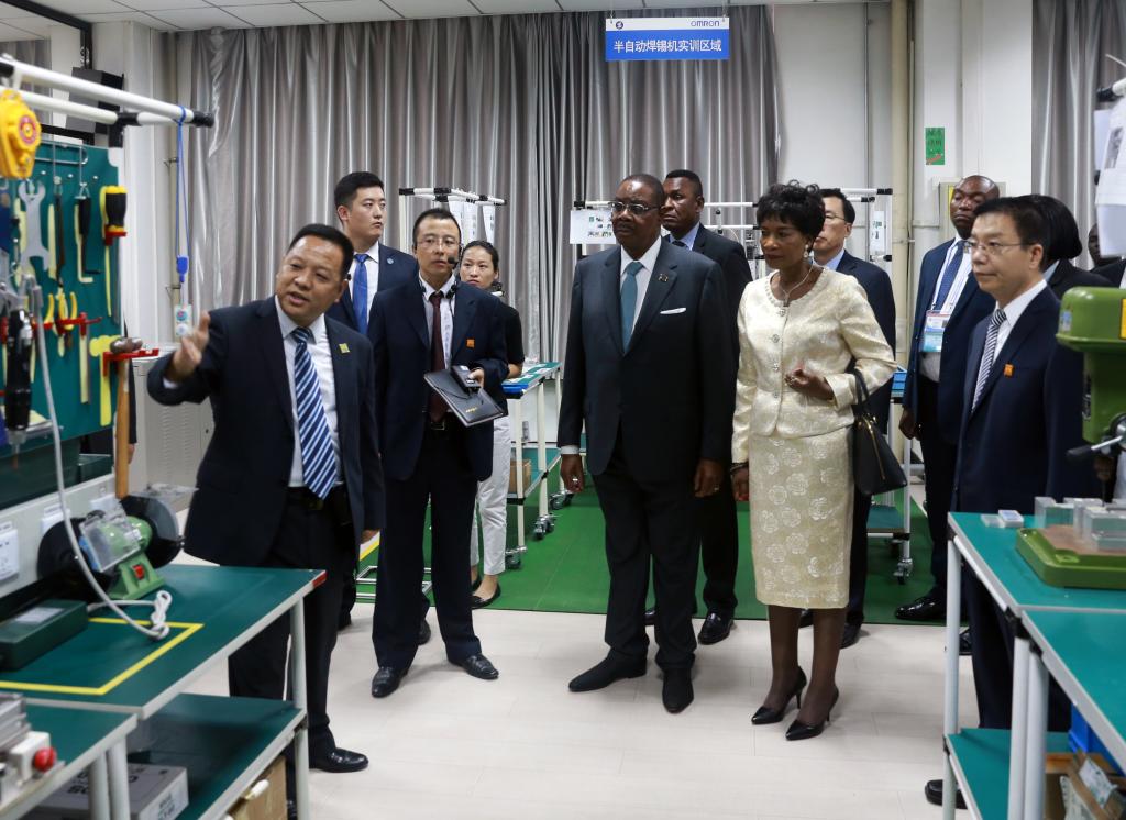 国家教学名师田锋社向穆塔里卡总统介绍机加工技术训练中心