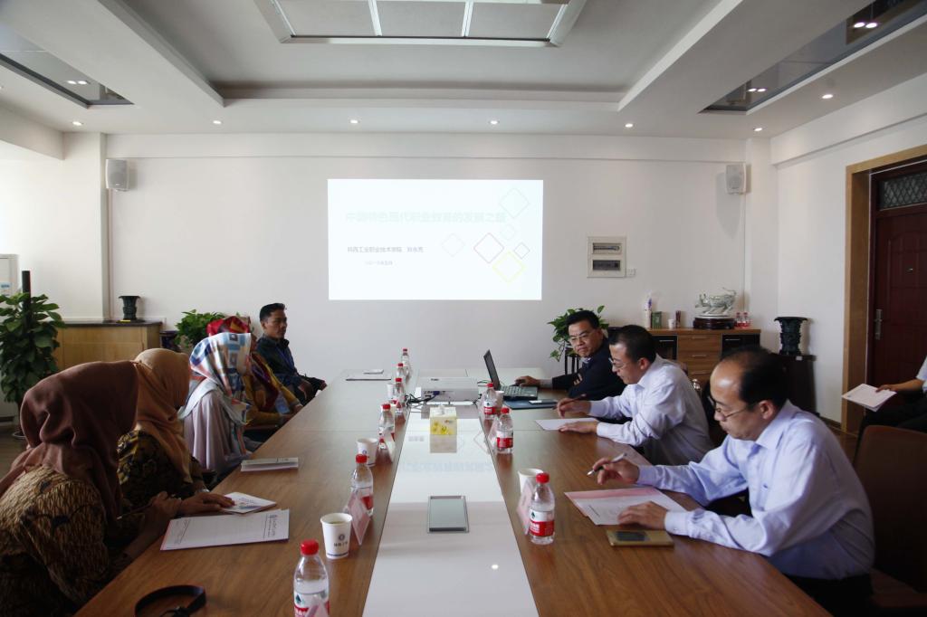 在培训环节,刘永亮以“中国现代职业教育发展之路”为题,从我国现代职业教育发展历程,取得的主要成就和下一步创新发展思路等方面,向印尼职业院校管理干部做了专题讲座。
